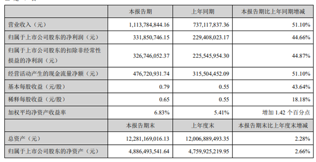 2021年上半年,公司經(jīng)營情況良好,共實(shí)現(xiàn)營業(yè)收入 30.98億元,實(shí)現(xiàn)歸母凈利潤7.59億元,截至2021年6月30日,公司資產(chǎn)總額206.47億元,歸母凈資產(chǎn)83.22億元。