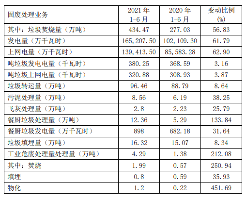 固廢業(yè)務(wù)主營業(yè)務(wù)收入增長的主要原因是報(bào)告期內(nèi)新增生活垃圾焚燒發(fā)電項(xiàng)目處理規(guī)模共 5700 噸/日、部分有機(jī)廢棄物處理項(xiàng)目及南海工業(yè)危廢處理項(xiàng)目投產(chǎn),環(huán)衛(wèi)業(yè)務(wù)、工程收入增加等,同時(shí)因加大業(yè)務(wù)拓展力度及信息化、智能化應(yīng)用不斷加強(qiáng),協(xié)同效應(yīng)和產(chǎn)能利用率進(jìn)一步提升,且去年上半年因疫情影響基數(shù)較低。