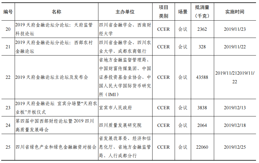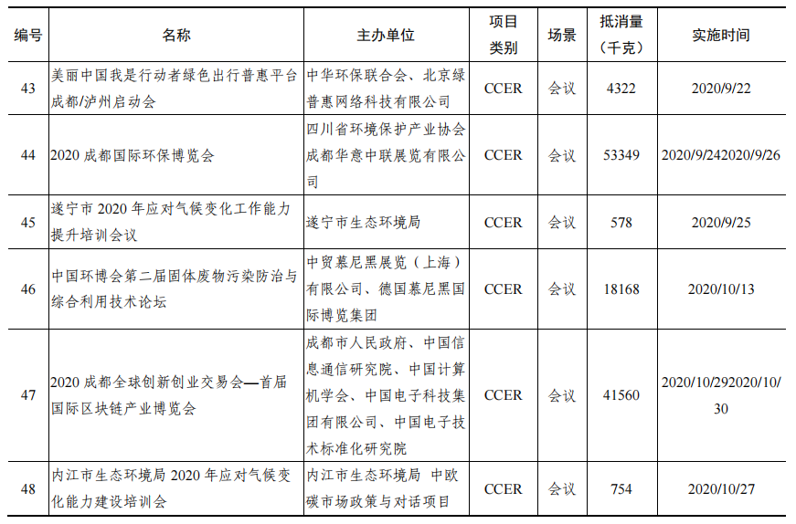 目前,四川已擁有碳中和會議、展覽、大數(shù)據(jù)中心、園區(qū)、景區(qū)、音樂會、婚禮等場景,雅安大數(shù)據(jù)產業(yè)園建成全國首個碳中和國家綠色數(shù)據(jù)中心,青城山—都江堰風景名勝區(qū)成為國內首個碳中和景區(qū)。從集中度看,溫室氣體排放抵消量最大的10個活動(都江堰風景名勝區(qū)、第二屆國際城市可持續(xù)發(fā)展高層論壇、青城山風景名勝區(qū)、全國機關事務文化建設工作研討會、2020成都國際環(huán)保博覽會、四川省林業(yè)碳匯國際研討會、2019天府金融論壇主論壇及發(fā)布會、2020成都全球創(chuàng)新創(chuàng)業(yè)交易會—首屆國際區(qū)塊鏈產業(yè)博覽會、四川省鐵路產業(yè)投資集團公司資產經營管理人員專題培訓班、四川省用能權交易開市活動及業(yè)務培訓會),共抵消溫室氣體2761.3噸,約占全部抵消量的57.2%;成都市碳中和活動超過60場次,最為集中,其次是遂寧市。從活動層次看,多以企事業(yè)單位活動為主;地方政府組織或參與的活動超過34場次;國際會議共有4場次,包括第二屆國際城市可持續(xù)發(fā)展高層論壇、2020成都國際環(huán)保博覽會、四川省林業(yè)碳匯國際研討會、2020成都全球創(chuàng)新創(chuàng)業(yè)交易會—首屆國際區(qū)塊鏈產業(yè)博覽會、第三屆國際城市可持續(xù)發(fā)展高層論壇。環(huán)境類活動碳中和超過40場次,金融機構參與活動也相對較多,凸顯了金融領域和環(huán)境領域的理念引領作用。