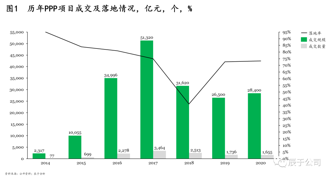 從商業(yè)模式來看,分水嶺之前,PPP模式推行正處于火熱狀態(tài),政府需求得以大量釋放,民營企業(yè)也找到了“用武之地”,BOT、TOT等模式也廣泛推行;而分水嶺之后,PPP模式遇冷(見圖1),商業(yè)模式再次變得不明朗,企業(yè)發(fā)展陷入迷茫。