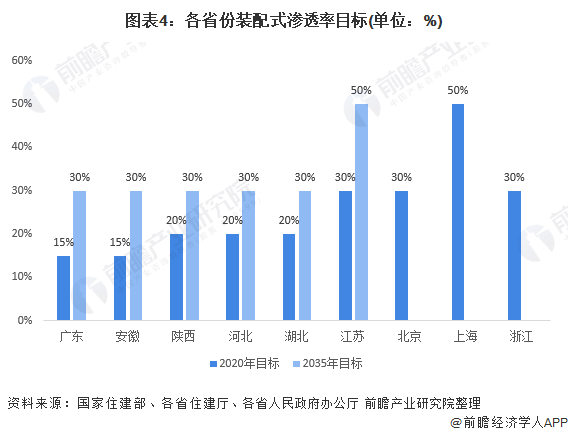 目前我國各地的政策也在大力支持裝配式施工方式的推廣。廣東、安徽、陜西等多數(shù)省份均對(duì)此設(shè)立了2035年滲透率達(dá)到30%的目標(biāo),北京、上海、江蘇、浙江等經(jīng)濟(jì)發(fā)達(dá)地區(qū)則更為嚴(yán)苛,分別設(shè)定了2020年滲透率達(dá)到30%、50%的目標(biāo)。隨著“碳達(dá)峰”“碳中和”政策的持續(xù)加碼,以數(shù)字化技術(shù)支持綠色環(huán)保的新型施工方式將有更大發(fā)展空間。