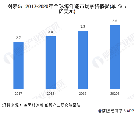 2017-2020年,全球海洋能市場融資規(guī)模逐年上升。其中2020年全球海洋能市場的融資金額達(dá)到3.6億美元,相較2019年增長9%。