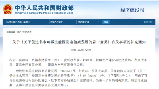 圖五:三部委《關(guān)于促進(jìn)非水可再生能源發(fā)電健康發(fā)展的若干意見(jiàn)》補(bǔ)充通知▼