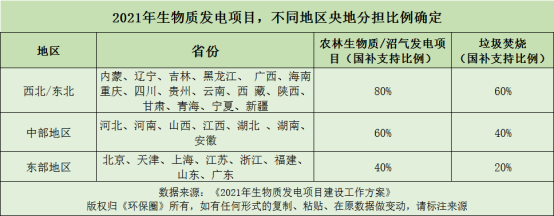 ?東部地區(qū)(北京市、天津市、上海市、江蘇省、浙江省、福建省、山東省、廣東省)農(nóng)林生物質(zhì)發(fā)電和沼氣發(fā)電項(xiàng)目中央支持比例為40%;垃圾焚燒發(fā)電項(xiàng)目中央支持比例為20%。