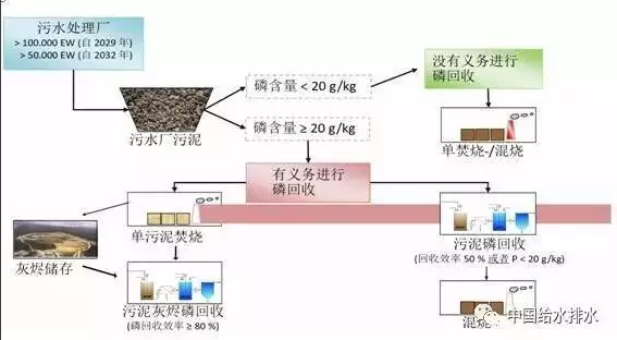 經(jīng)過十多年的修訂,德國污水處理廠污泥法(AbfKl?rV)在2017年8月正式宣布生效。新版規(guī)范明確規(guī)定, 在規(guī)定的過渡期(12年或15年)之后,所有規(guī)模超過5萬人口當(dāng)量的污水廠都必須從污泥或者污泥灰燼內(nèi)進行磷回收,同時禁止污泥土地利用。