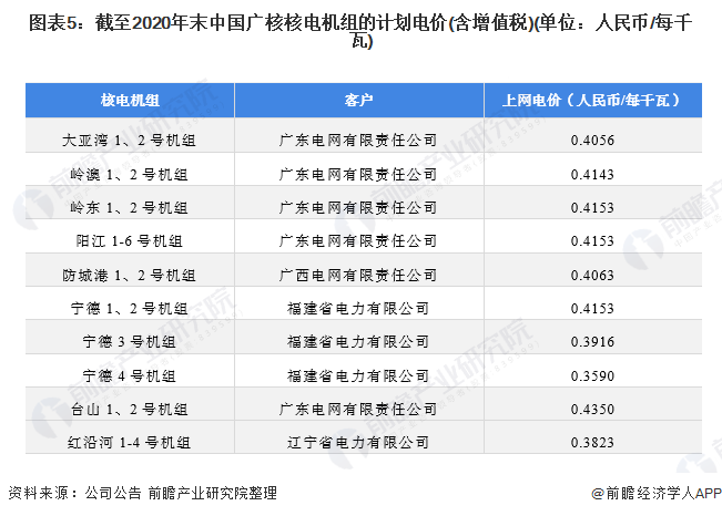 同時(shí),電價(jià)是影響發(fā)電企業(yè)獲利規(guī)模的重要因素。根據(jù)公司披露的信息顯示,截至2020年12月31日,中國(guó)廣核核電機(jī)組的計(jì)劃電價(jià)(含增值稅):