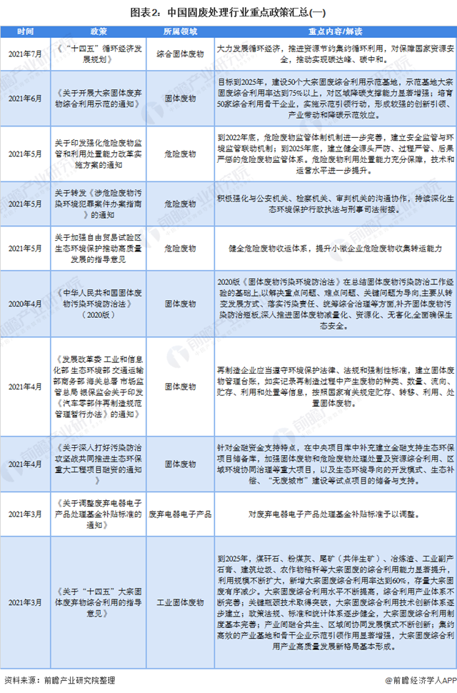 “十四五”規(guī)劃期間針對固廢處理行業(yè)部分的政策解讀
