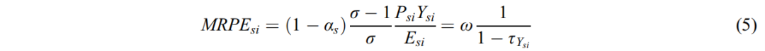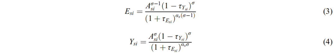 s代表產(chǎn)業(yè);i代表地區(qū);π代表利潤;τY為產(chǎn)出扭曲;τE為資源扭曲;P為產(chǎn)品價格;R為資本要素價格;ω為資源要素價格。假設(shè)各地區(qū)中間產(chǎn)品部門的生產(chǎn)函數(shù)是不變替代彈性的D-S生產(chǎn)函數(shù)。那么,企業(yè)利潤最大化的條件是:
