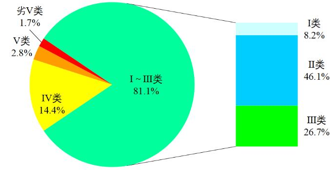 圖2 1-7月全國(guó)地表水水質(zhì)類別比例