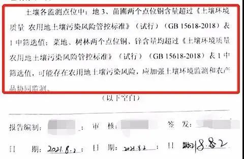 抽樣檢測發(fā)現(xiàn)周邊地塊土壤中銅、鋅含量超過《土壤環(huán)境質量農用地土壤污染風險管控標準(試行)》篩選值,環(huán)境受到污染▼