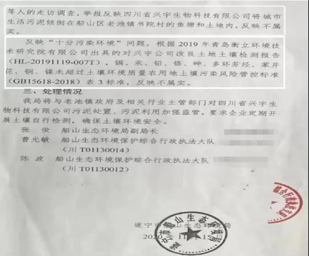 特別是2020年11月,四川省省級生態(tài)環(huán)保督察進駐遂寧市期間,群眾再次投訴該公司非法傾倒填埋污泥問題,但是船山區(qū)卻回復謊稱群眾反映問題不屬實。遂寧市也未經(jīng)認真核實就原樣轉報調查結論,導致問題依然未能得到及時解決。