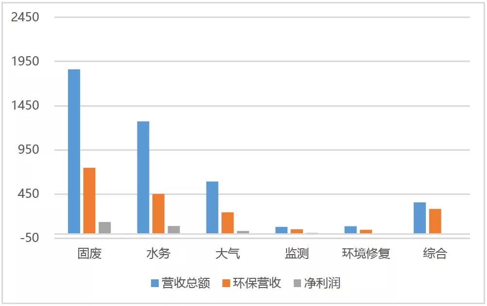 圖2 各細(xì)分領(lǐng)域環(huán)保上市公司2021年上半年總體業(yè)績(jī)情況(單位:億元)