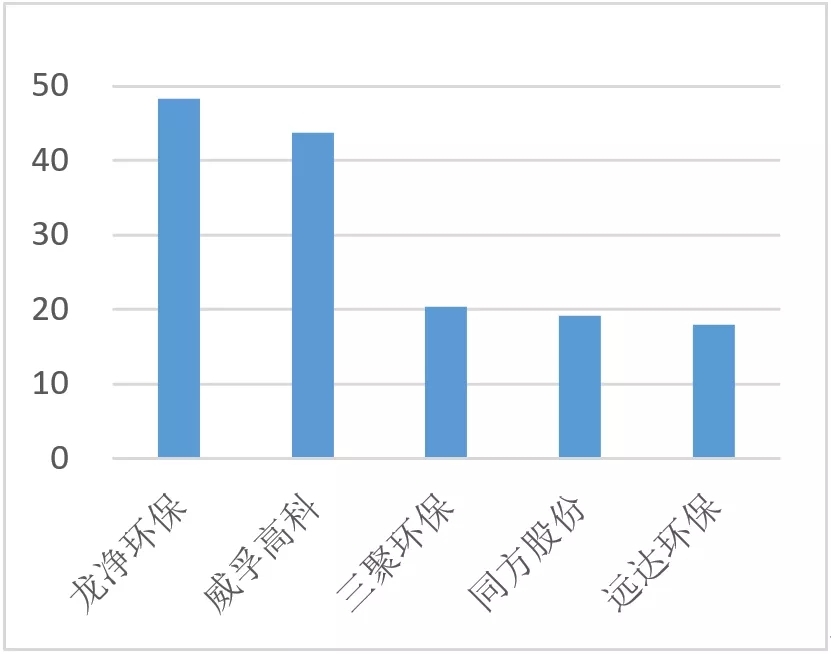 上半年大氣領(lǐng)域環(huán)保營(yíng)收TOP5(單位:億元)