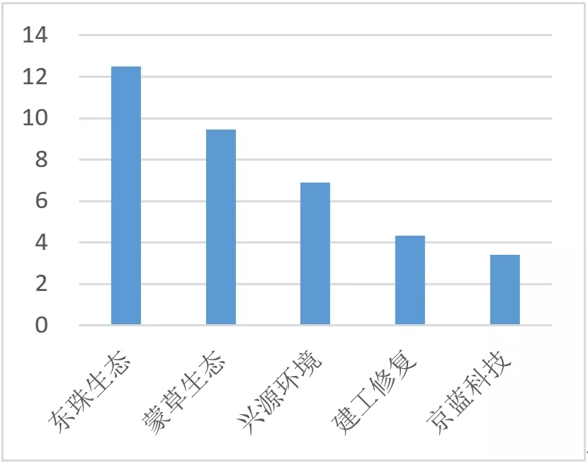 上半年環(huán)境修復(fù)領(lǐng)域凈利潤(rùn)TOP5(單位:億元)