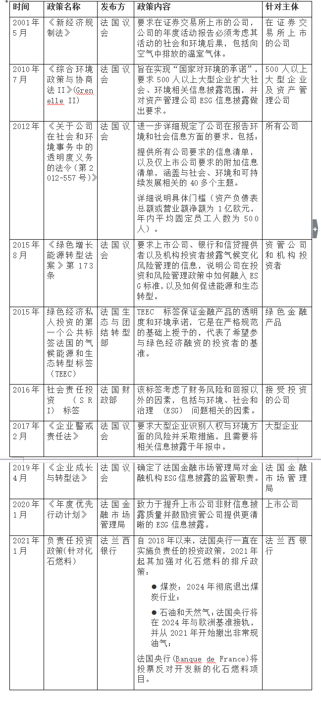 可以看出,法國綠色金融相關政策中對于環(huán)境或ESG信息披露有著詳細的規(guī)定,并不斷地提升披露要求。在一定程度上,法國地環(huán)境信息披露立法推動了歐盟范圍內相關立法地進程。