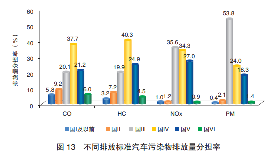 從排放標(biāo)準(zhǔn)上看,國Ⅲ、國Ⅳ、國Ⅴ4項(xiàng)污染物排放分擔(dān)率都相對高一些。