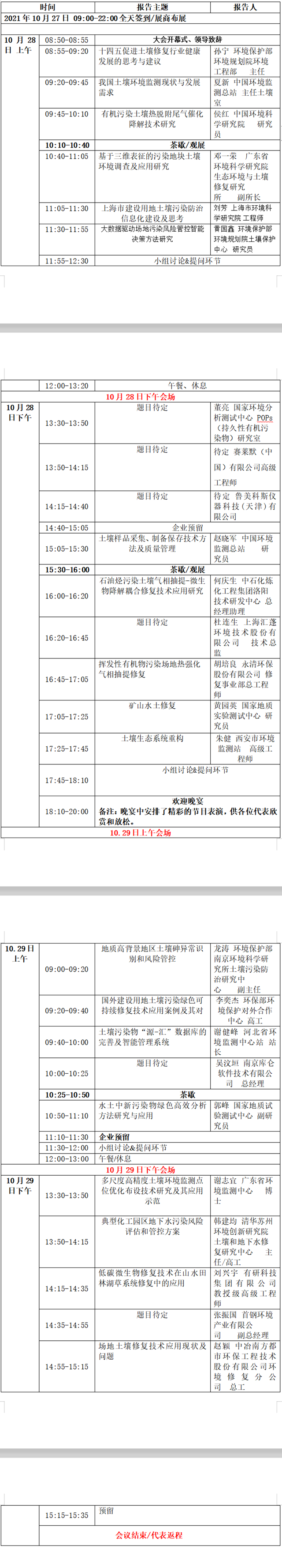 會(huì)議議程第五屆中國土壤與地下水高峰論壇2021.10.28-29 杭州