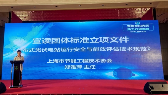 上海市節(jié)能工程技術(shù)協(xié)會(huì)辦公室主任鄭雅萍宣讀團(tuán)體標(biāo)準(zhǔn)《分布式光伏電站運(yùn)行安全與能效評(píng)估技術(shù)規(guī)范》工作組立項(xiàng)文件。