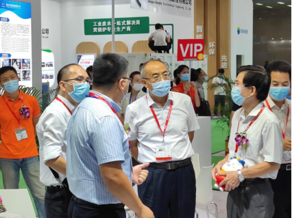 展會首日,廣東省人大環(huán)境與資源保護委員會副主任何真、廣東省生態(tài)環(huán)境二級巡視員鄧?yán)^勇等領(lǐng)導(dǎo)組成的貴賓參觀團蒞臨朗坤環(huán)境展位參觀。