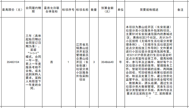 項目名稱: 惠山經(jīng)開區(qū)(長安街道)垃圾分類小區(qū)服務外包采購項目