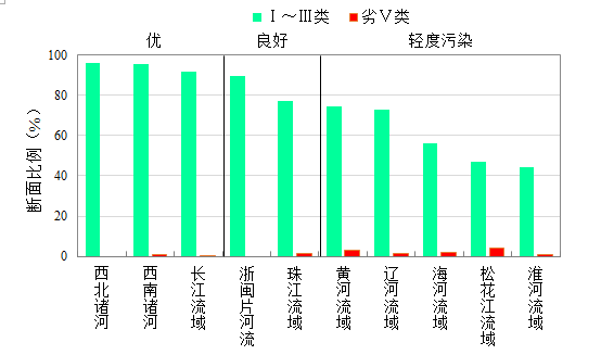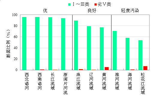 1-8月,長江、黃河、珠江、松花江、淮河、海河、遼河等七大流域及西北諸河、西南諸河和浙閩片河流水質(zhì)優(yōu)良(Ⅰ~Ⅲ類)斷面比例為83.4%,同比上升0.9個百分點;劣Ⅴ類斷面比例為1.2%,同比下降1.1個百分點。主要污染指標(biāo)為化學(xué)需氧量、高錳酸鹽指數(shù)和總磷。其中,西北和西南諸河、長江流域和浙閩片河流水質(zhì)為優(yōu);珠江、遼河和黃河流域水質(zhì)良好;淮河、海河和松花江流域為輕度污染。