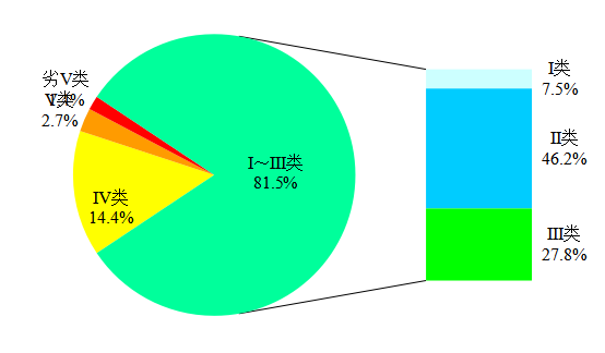 1-8月,3641個國家地表水考核斷面中,水質(zhì)優(yōu)良(Ⅰ~Ⅲ類)斷面比例為81.5%,同比上升0.9個百分點;劣Ⅴ類斷面比例為1.4%,同比下降0.9個百分點。主要污染指標(biāo)為化學(xué)需氧量、高錳酸鹽指數(shù)和總磷。