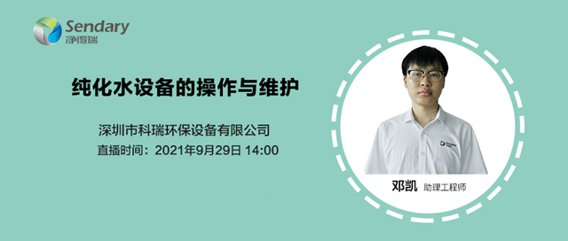 2021年9月29日14:00,凈得瑞帶來【純化水設(shè)備的操作和維護】直播分享,歡迎大家搬好小板凳,直達直播間。
