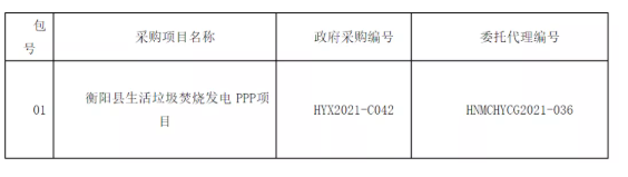 近日,中國(guó)固廢網(wǎng)從E20標(biāo)訊系統(tǒng)E標(biāo)通獲悉,湖南省衡陽(yáng)市衡陽(yáng)縣生活垃圾焚燒發(fā)電PPP項(xiàng)目公開(kāi)招標(biāo)。項(xiàng)目建設(shè)投資估算總額約為3.59億元。