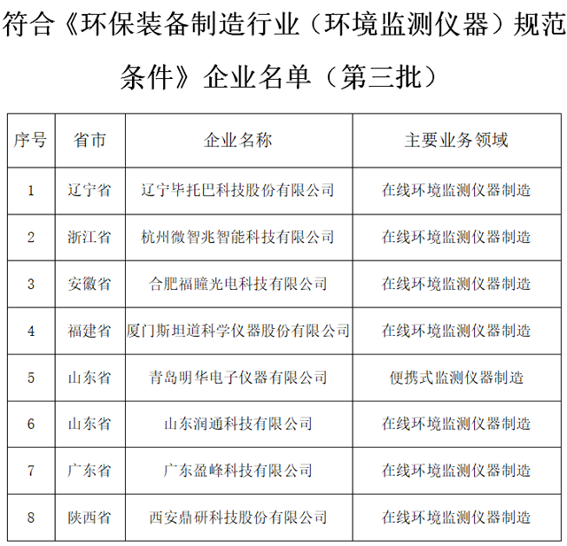 3. 符合《環(huán)保裝備制造行業(yè)(環(huán)境監(jiān)測儀器)規(guī)范條件》企業(yè)名單(第三批)