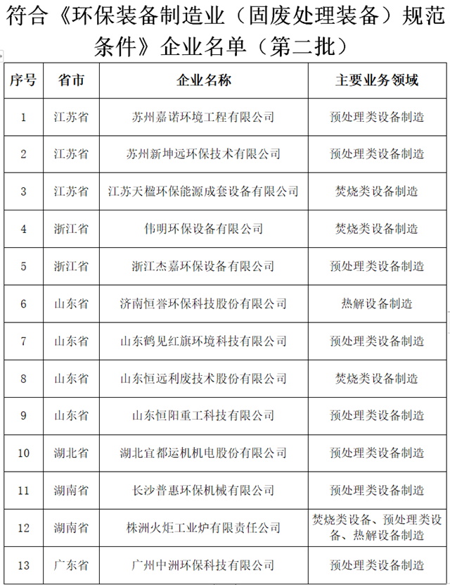 4. 符合《環(huán)保裝備制造業(yè)(固廢處理裝備)規(guī)范條件》企業(yè)名單(第二批)