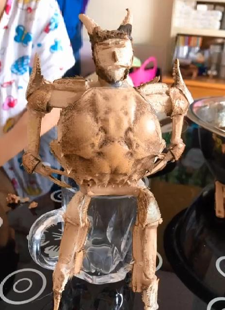 蝦兵蟹將聽說過么?有網(wǎng)友閑著無聊便將吃完螃蟹后的螃蟹殼隨手拼成了“士兵”。不過這只是隨手為之,但也有網(wǎng)友將螃蟹殼做成了能長久放置的立體擺件。將螃蟹殼洗凈曬干,裝入關(guān)節(jié)零件進(jìn)行拼接,放入黏土塑型定型,上色拋光打蠟……在一連串復(fù)雜的工藝之后,網(wǎng)友將螃蟹殼,制成了“高達(dá)戰(zhàn)蟹”。