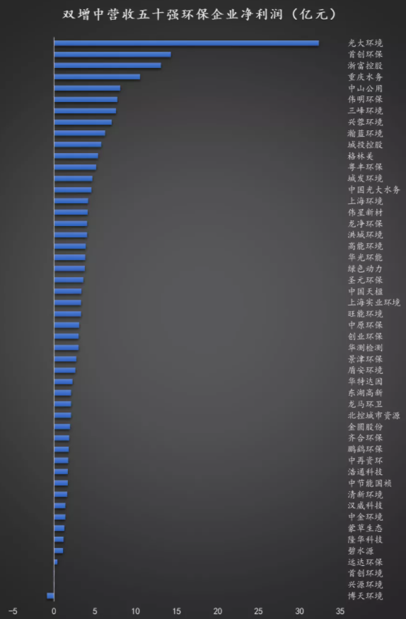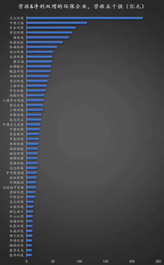 122家營收&凈利雙增的環(huán)保企業(yè)中,營收50強都是誰?
