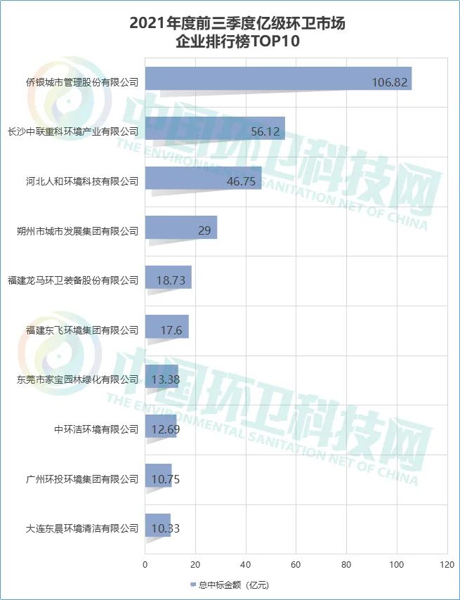 值得一提的是,廣東省今年環(huán)境衛(wèi)生工作的重點(diǎn)放在了末端領(lǐng)域:4月份,廣東省人民政府印發(fā)《廣東省國民經(jīng)濟(jì)和社會(huì)發(fā)展第十四個(gè)五年規(guī)劃和2035年遠(yuǎn)景目標(biāo)綱要》(以下簡(jiǎn)稱《綱要》)?!毒V要》指出,要深入踐行生態(tài)文明理念,加快建設(shè)美麗廣東。引導(dǎo)居民自覺實(shí)施生活垃圾分類,推行生活垃圾減量化、資源化、無害化;加快生活垃圾處理設(shè)施建設(shè),提高焚燒處理比例;推動(dòng)固體廢物源頭減量化、全過程監(jiān)管,提升利用處置能力。到2025年,城市生活垃圾無害化處理率達(dá)到99%以上。因此,今年廣東省垃圾焚燒項(xiàng)目上馬規(guī)模大增,一改前兩年排名十名開外的局勢(shì):截至目前,廣東省共開標(biāo)5個(gè)生活垃圾焚燒項(xiàng)目,處理規(guī)模合計(jì)8550噸/日,較去年全年增長1325%。安徽省在本時(shí)間段內(nèi),開標(biāo)億級(jí)環(huán)衛(wèi)項(xiàng)目數(shù)量位居第三,總中標(biāo)金額位居第一。這與其近年來在城市管理等領(lǐng)域發(fā)布的政策密不可分。2019年10月,安徽省人民政府發(fā)布關(guān)于進(jìn)一步加強(qiáng)城市精細(xì)化管理工作的指導(dǎo)意見,其中明確提到加強(qiáng)城市環(huán)境衛(wèi)生治理。大力推進(jìn)城市道路清掃保潔工作市場(chǎng)化、專業(yè)化、標(biāo)準(zhǔn)化。加大道路清掃保潔機(jī)械化作業(yè)推進(jìn)力度,到2020年年底,設(shè)區(qū)的市建成區(qū)機(jī)械化清掃率達(dá)到80%以上,縣城達(dá)到65%以上。城市重點(diǎn)區(qū)域全面實(shí)施道路濕掃、吸掃作業(yè)。截至目前,安徽省已開標(biāo)2個(gè)超20億環(huán)衛(wèi)項(xiàng)目:亳州市利辛縣城鄉(xiāng)環(huán)衛(wèi)一體化工程項(xiàng)目及六安市舒城縣城鄉(xiāng)環(huán)衛(wèi)一體化特許經(jīng)營項(xiàng)目,金額大,服務(wù)年限長,這也是安徽省目前金額領(lǐng)先其余省份的原因之一。在安徽省有所斬獲的企業(yè),除我們眼熟的僑銀股份、康潔集團(tuán)、盈峰中聯(lián)之外,也有當(dāng)?shù)丨h(huán)企及物業(yè)企業(yè)如雅生活、嘉誠物業(yè)等。根據(jù)環(huán)衛(wèi)科技網(wǎng)統(tǒng)計(jì),2021年前三季度中標(biāo)金額排名前三的企業(yè)為僑銀股份、盈峰環(huán)境、人和環(huán)境。1、數(shù)據(jù)來源于中國政府采購網(wǎng)及各地方政府采購網(wǎng);2、版權(quán)歸環(huán)衛(wèi)科技網(wǎng)所有,未經(jīng)書面授權(quán),禁止轉(zhuǎn)載。與半年度盤點(diǎn)相比,前三名并無變化,但TOP10榜單出現(xiàn)了半年榜沒有的三位新面孔:朔州市城市發(fā)展集團(tuán)有限公司、廣州環(huán)投環(huán)境集團(tuán)有限公司及大連東晨環(huán)境清潔有限公司,三家企業(yè)皆是憑借新入手的十億級(jí)環(huán)衛(wèi)項(xiàng)目躋身前十。其中,朔州市城市發(fā)展集團(tuán)有限公司、廣州環(huán)投環(huán)境集團(tuán)有限公司均為國企,也是本年前三季度榜單上唯二的國企。截至9月30日,今年僑銀股份億級(jí)項(xiàng)目中標(biāo)額約為106.82億元,穩(wěn)坐榜單第一。僑銀股份今年收獲多個(gè)億級(jí)、十億級(jí)環(huán)衛(wèi)一體化項(xiàng)目,成績喜人。7月21日,僑銀股份在預(yù)中標(biāo)2.87億元的江西省南昌市青云譜區(qū)環(huán)衛(wèi)作業(yè)市場(chǎng)化服務(wù)采購項(xiàng)目(一標(biāo)段)后,成功突破百億大關(guān),成為本年度第一個(gè)合同金額破百億的企業(yè)。今年,在碳中和目標(biāo)下,垃圾分類作為節(jié)能減排的重要手段,市場(chǎng)化發(fā)展加速。作為最早響應(yīng)垃圾分類的企業(yè)之一,僑銀股份在垃圾分類全鏈條服務(wù)、智慧化管理和資源化利用方面都有成功案例。今年,在“碳中和”加持下,僑銀股份競(jìng)投“碳中和”垃圾分類項(xiàng)目首戰(zhàn)告捷:9月7日,僑銀股份聯(lián)合全資子公司預(yù)中標(biāo)佛山市禪城區(qū)垃圾分類全覆蓋服務(wù)項(xiàng)目,項(xiàng)目總金額約1.16億元。引領(lǐng)智慧環(huán)衛(wèi)高速發(fā)展盈峰環(huán)境前三季度共中標(biāo)7個(gè)億級(jí)環(huán)衛(wèi)項(xiàng)目,總金額約56.12億元。在積極拓展傳統(tǒng)環(huán)衛(wèi)業(yè)務(wù)的同時(shí),盈峰環(huán)境今年首次揚(yáng)帆海上:9月10日,三亞市天涯區(qū)“海上環(huán)衛(wèi)保潔作業(yè)項(xiàng)目”正式簽約,并于9月15日順利進(jìn)場(chǎng),公司正式邁入“海域保潔”新時(shí)代。今年以來,盈峰環(huán)境在智慧環(huán)衛(wèi)領(lǐng)域?qū)耀@成果:年初,盈峰環(huán)境中標(biāo)價(jià)值38億的湘潭市環(huán)衛(wèi)一體化項(xiàng)目,鞏固了進(jìn)一步完善了“智能裝備、智慧服務(wù)、智云平臺(tái)”的智慧環(huán)衛(wèi)戰(zhàn)略布局。此外,盈峰環(huán)境還積極尋求對(duì)外合作,實(shí)現(xiàn)強(qiáng)強(qiáng)聯(lián)合。1月,盈峰環(huán)境與美的物業(yè)在佛山簽署戰(zhàn)略合作協(xié)議,雙方將在智慧清潔示范性社區(qū)的打造以及城市運(yùn)營服務(wù)等方面通過硬件設(shè)備與管理系統(tǒng)的優(yōu)勢(shì)結(jié)合,共同開發(fā)城市服務(wù)業(yè)務(wù)。9月8日,盈峰環(huán)境聯(lián)合發(fā)起的低速無人駕駛產(chǎn)業(yè)聯(lián)盟正式成立,盈峰環(huán)境聯(lián)