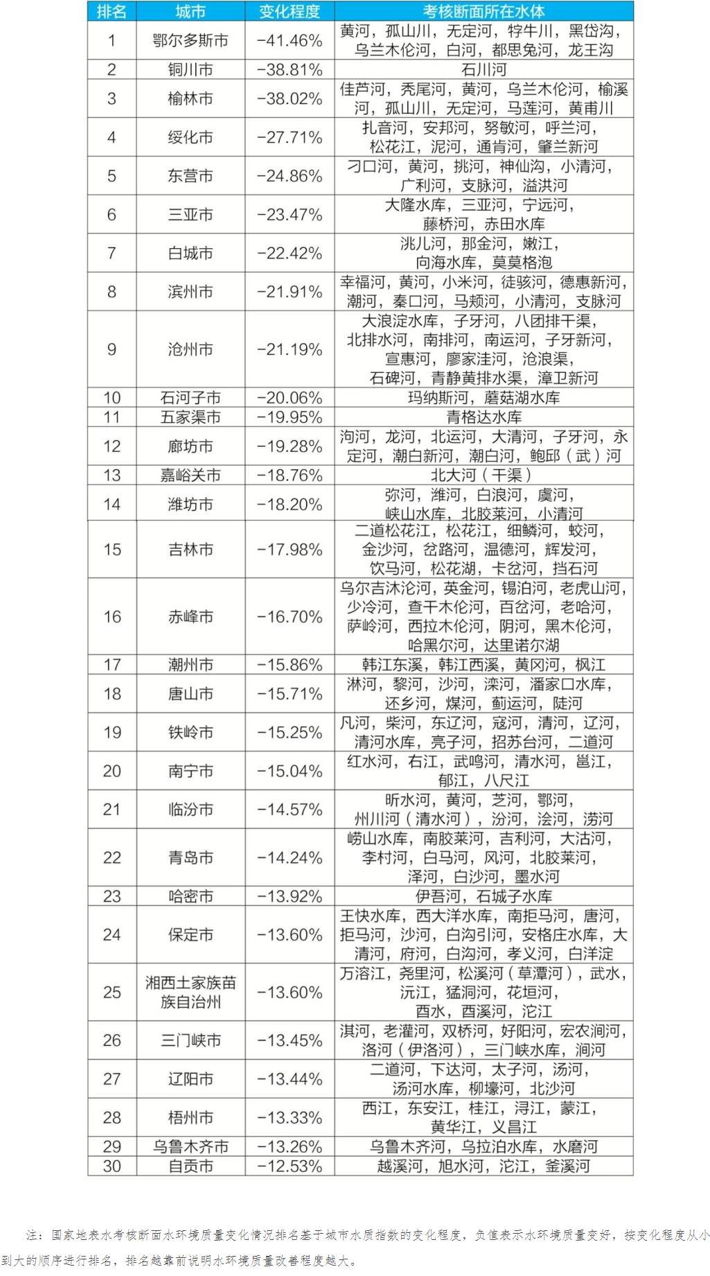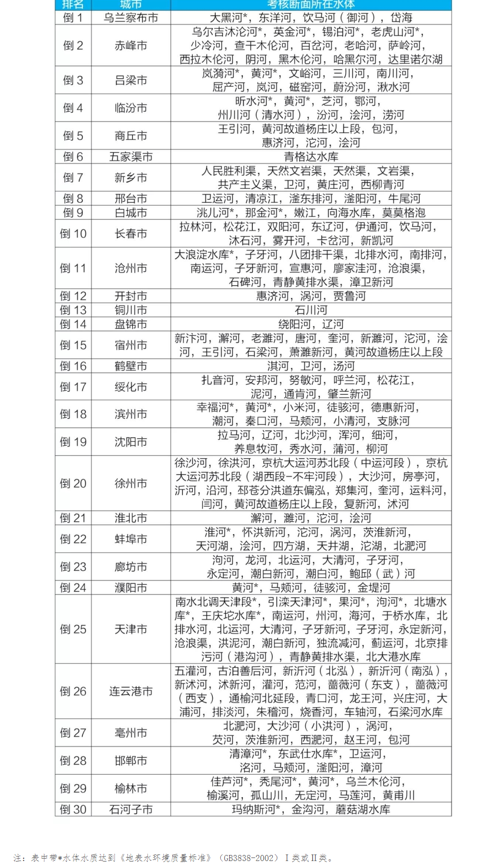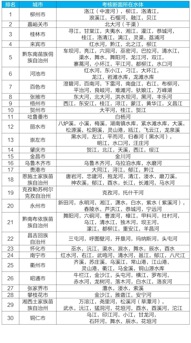 地級(jí)及以上城市國(guó)家地表水考核斷面排名