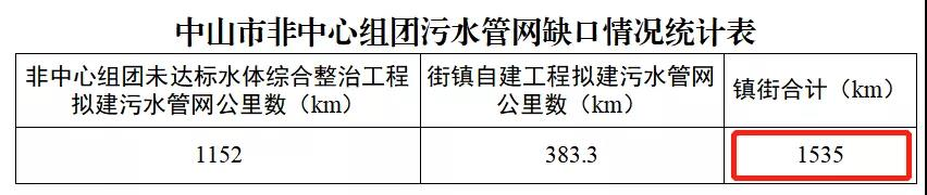 污水處理廠進水濃度為啥這么低?原因很復雜,有跑冒滴漏的原因,有自備水源的原因,有管道返坡的原因,有河水倒灌的原因,還有地下水滲漏的原因。不過,在眾多原因之中,最受中央生態(tài)環(huán)保督察組重視的還是管網(wǎng)問題。督察組在通報廣東茂名案例時就指出,茂名城區(qū)生活污水處理廠進水濃度和運行負荷長期偏低,主要就是“受污水管網(wǎng)建設滯后影響”。因為,茂名市全市污水集中收集率僅為34.5%,不足全省平均水平的一半,污水管網(wǎng)缺口巨大。▼截至2021年8月,中山市非中心組團污水管網(wǎng)缺口達到1535公里事實上,督察組通報后,茂名市也迅速啟動了污水處理設施和管網(wǎng)建設攻堅工作,要求“掛圖攻堅”,傾力推進污水處理設施和管網(wǎng)建設。