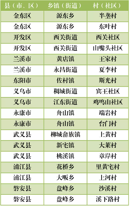 金華市(18個(gè))
