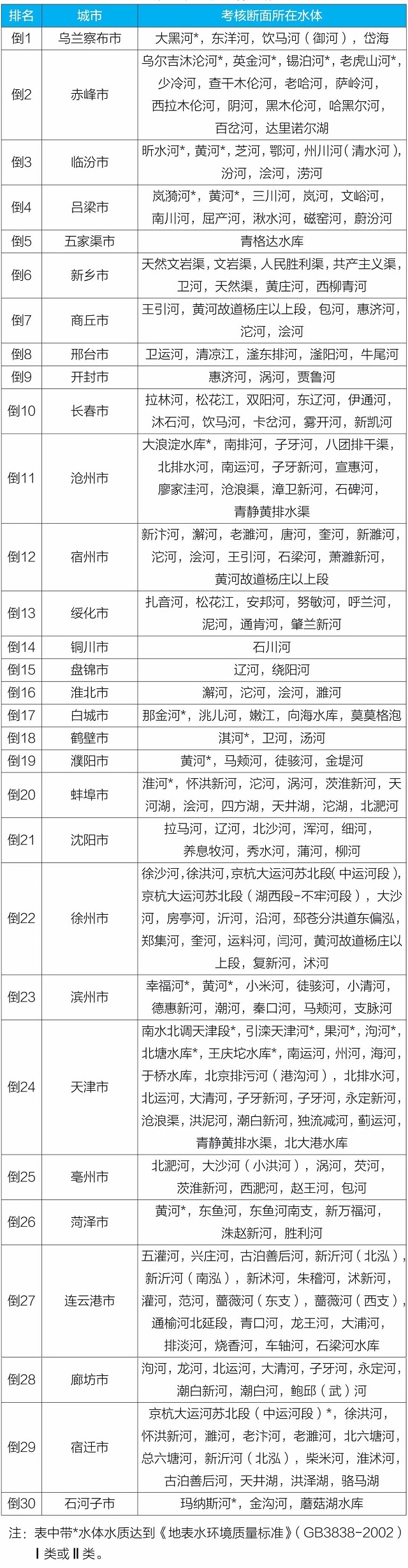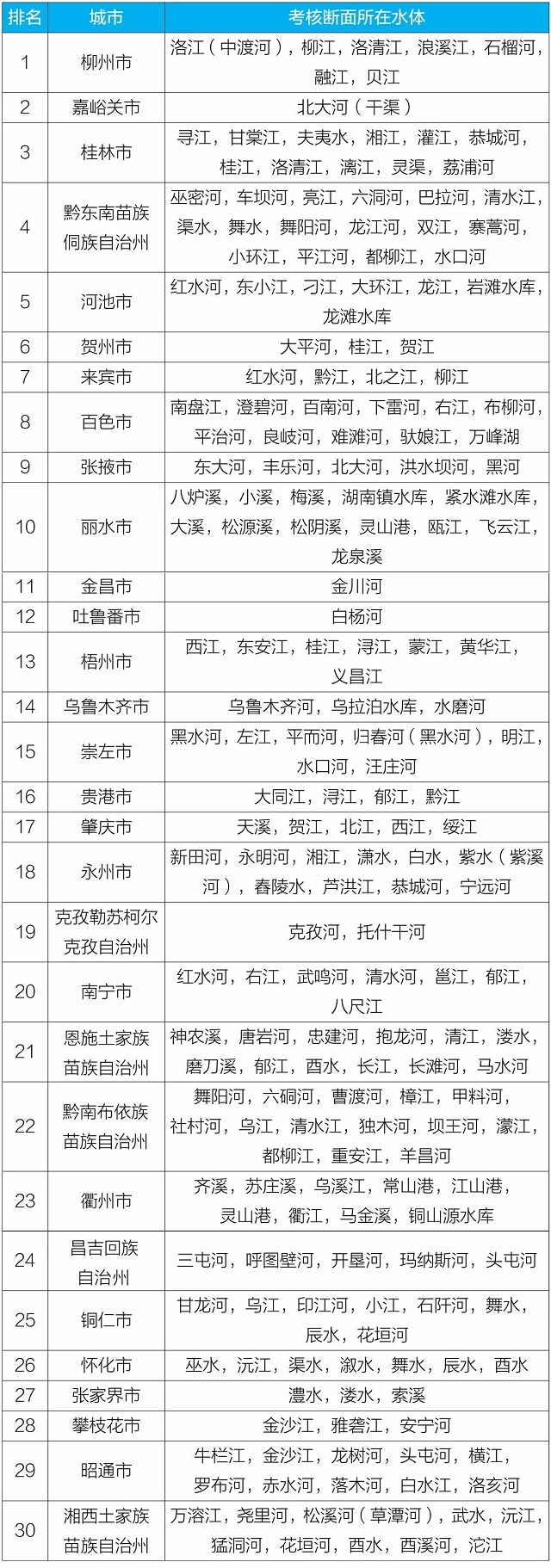 地級(jí)及以上城市國(guó)家地表水考核斷面排名