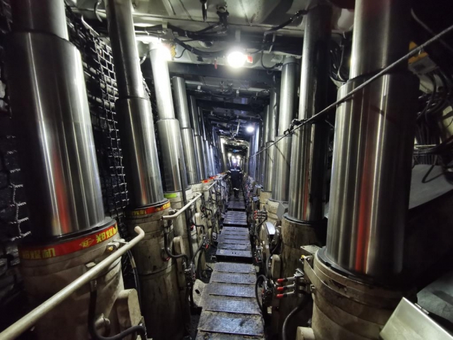 坐在生產(chǎn)指揮車上,記者從羊場灣煤礦的一號井口開始下井,車輛沿著運輸巷道緩緩行駛了約12公里后,到達了采煤工作面。在垂直地面800米深的井下,早班工人正在忙碌地進行設(shè)備檢修,給中班和夜班采煤提供良好的生產(chǎn)準備。
