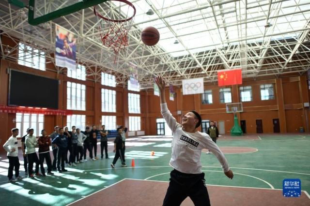 11月25日,青海省海南藏族自治州興??h民族高級中學(xué)學(xué)生在室內(nèi)籃球館訓(xùn)練。新華社記者 駱曉飛 攝