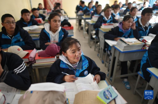 11月25日,青海省海南藏族自治州興海縣民族高級中學(xué)高一(1)班學(xué)生在教室內(nèi)聽講。新華社記者 駱曉飛 攝