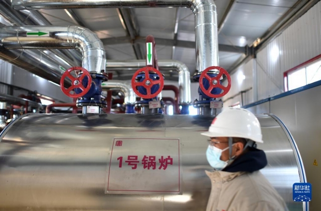 11月25日,大唐青海能源開發(fā)有限公司一名工人在青海省海南藏族自治州興海縣民族高級中學(xué)鍋爐房內(nèi)巡檢。新華社記者 駱曉飛 攝