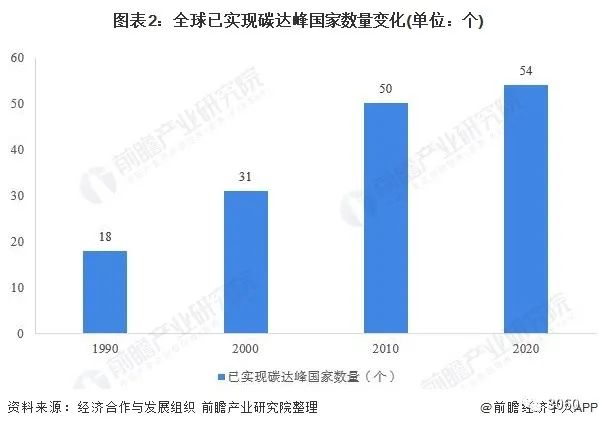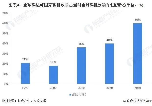 目前,全球已經(jīng)有54個國家的碳排放實現(xiàn)達峰,在已經(jīng)碳達峰的這些國家占當(dāng)時全球碳排放量的比例分別為21%、18%、36%和40%。到2030年,屆時全球?qū)⒂?8個國家實現(xiàn)碳排放達峰,占全球碳排放量的60%。