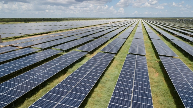 ↑ 這是2019年12月13日拍攝的中企承建的東非最大光伏電站——肯尼亞加里薩50兆瓦光伏發(fā)電站太陽(yáng)能電池板。