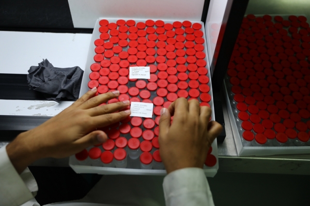 ↑ 2021年9月6日,在埃及吉薩的埃及生物制品與疫苗公司,工作人員檢查生產(chǎn)出的新冠疫苗。埃及是非洲大陸第一個(gè)同中國(guó)合作生產(chǎn)新冠疫苗的國(guó)家。