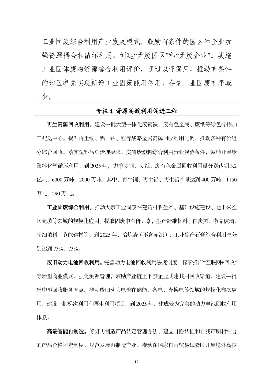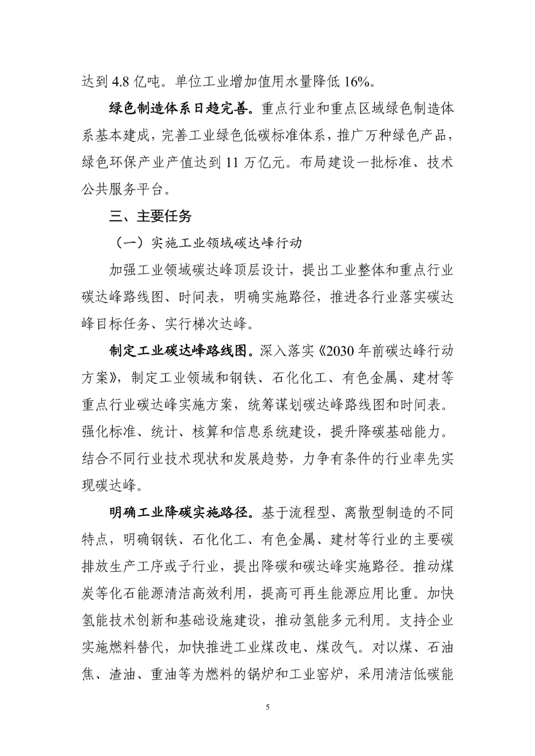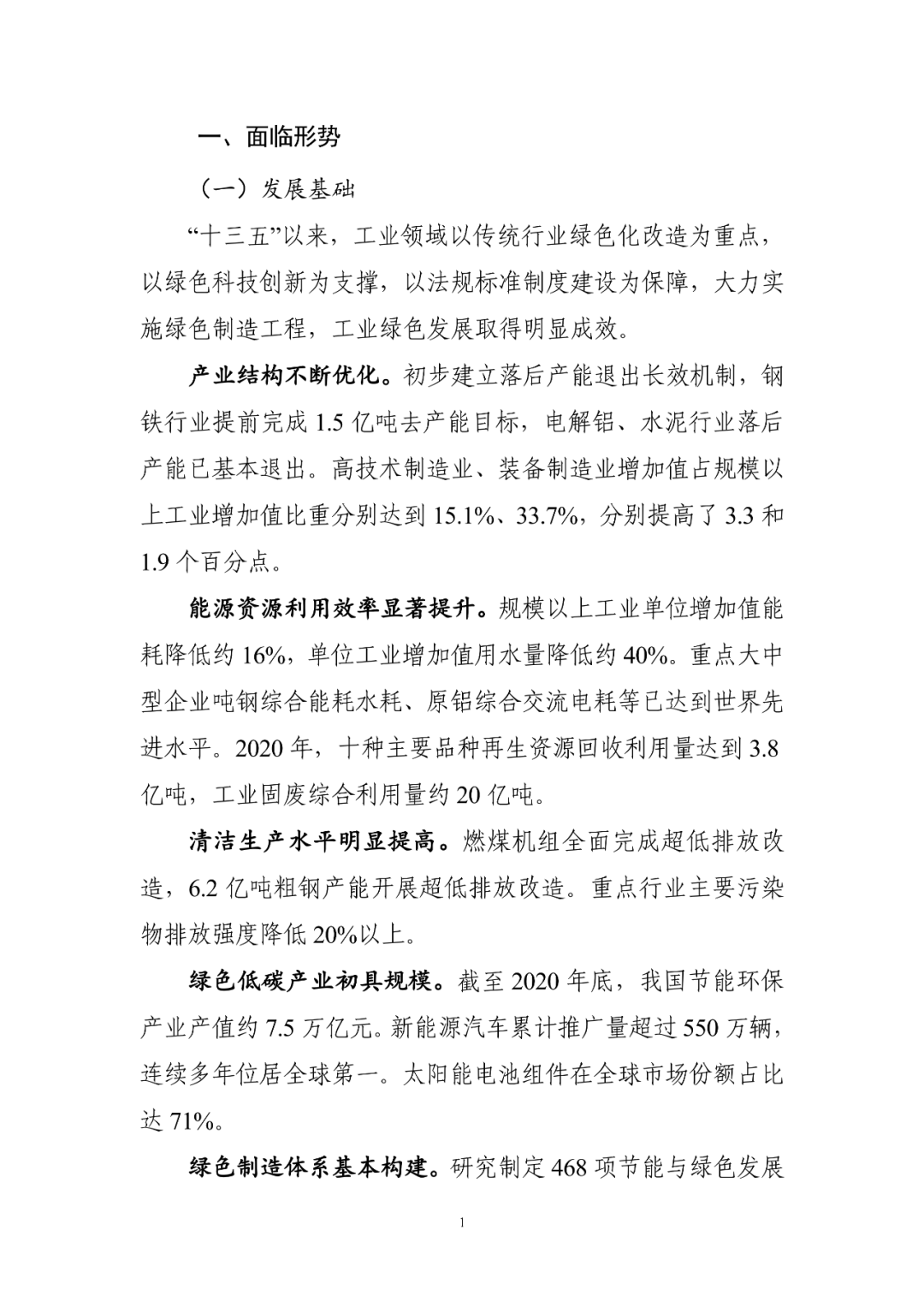 工信部日前印發(fā)了《“十四五”工業(yè)綠色發(fā)展規(guī)劃》(下稱《規(guī)劃》)。《規(guī)劃》提出主要目標:到2025年,工業(yè)產(chǎn)業(yè)結構、生產(chǎn)方式綠色低碳轉(zhuǎn)型取得顯著成效,綠色低碳技術裝備廣泛應用,能源資源利用效率大幅提高,綠色制造水平全面提升,為2030年工業(yè)領域碳達峰奠定堅實基礎。具體包括:碳排放強度持續(xù)下降;污染物排放強度顯著下降;能源效率穩(wěn)步提升;資源利用水平明顯提高;綠色制造體系日趨完善。工業(yè)和信息化部關于印發(fā)《“十四五”工業(yè)綠色發(fā)展規(guī)劃》的通知