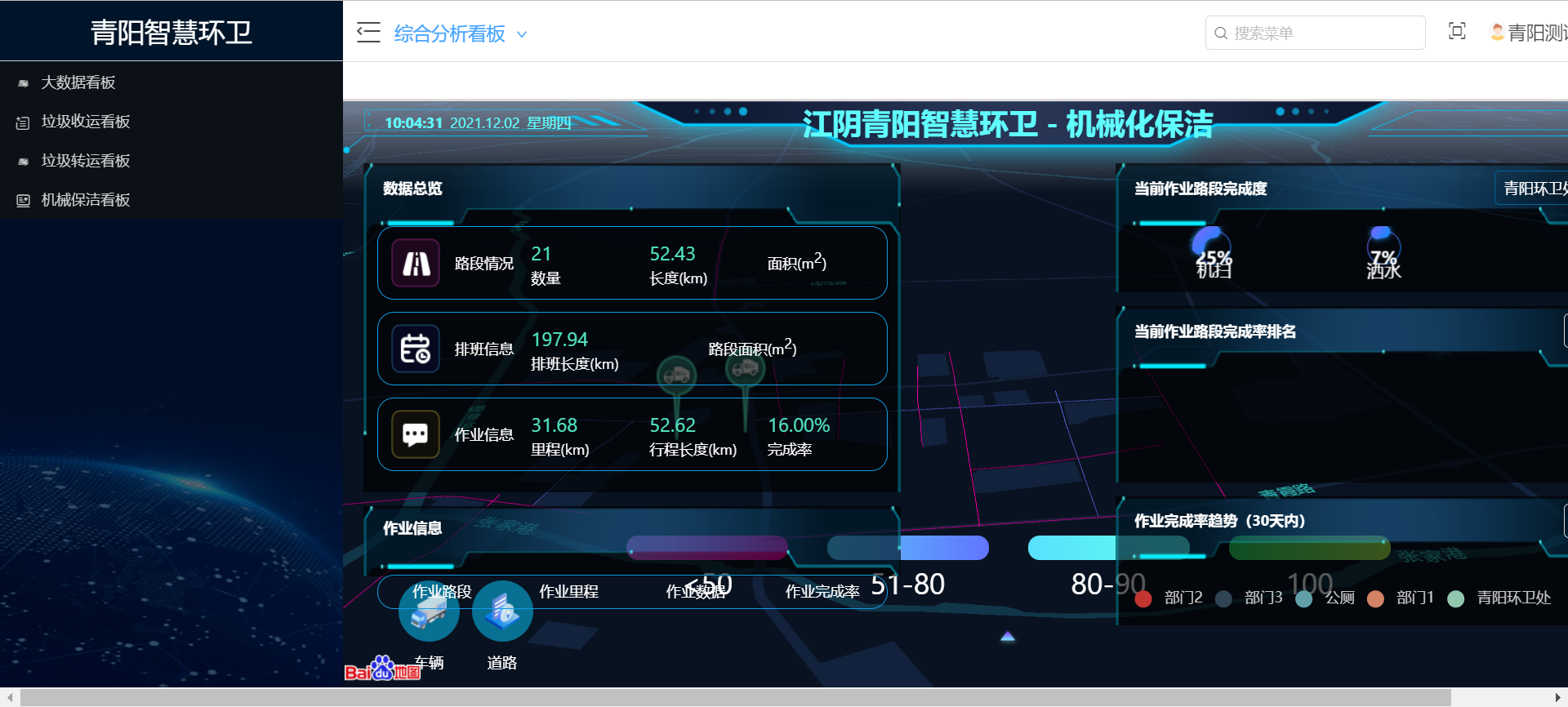在這種背景下,為了保證青陽環(huán)衛(wèi)的高質(zhì)量和高效率,旌揚(yáng)環(huán)境也積極利用現(xiàn)代化信息技術(shù),構(gòu)建了一套全面、精細(xì)、智能的智慧環(huán)境平臺(tái)。