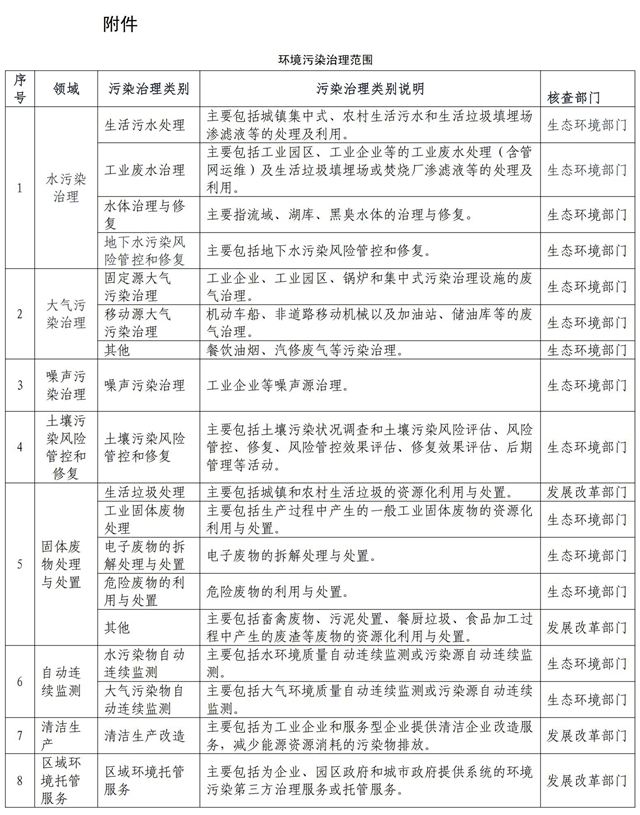 (二)稅務部門在后續(xù)管理過程中,對享受優(yōu)惠的企業(yè)是否符合60號公告第二條第五項、第六項規(guī)定條件有疑義的,可轉請《環(huán)境污染治理范圍》(見附件)所列的同級生態(tài)環(huán)境或發(fā)展改革部門核查。
