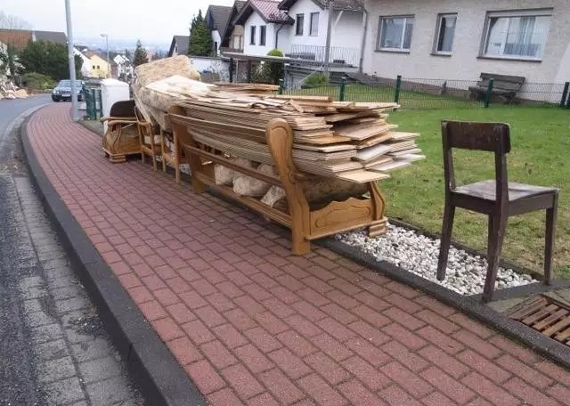 有人說了,德國人這樣扔家具,街上豈不是亂啦。嘿嘿,其實是這樣的,每個德國城市規(guī)定不同,但一般都是在固定時間允許扔,或者是和收家具的工人約時間。家具在街上不會呆多長時間,工人就來收了。