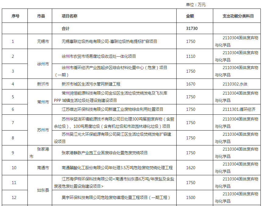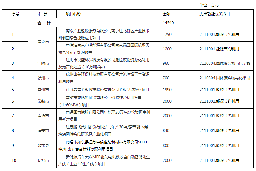附件:江蘇省2021年污染治理和節(jié)能減碳專項(xiàng)(污染治理方向)中央基建投資預(yù)算(撥款)表