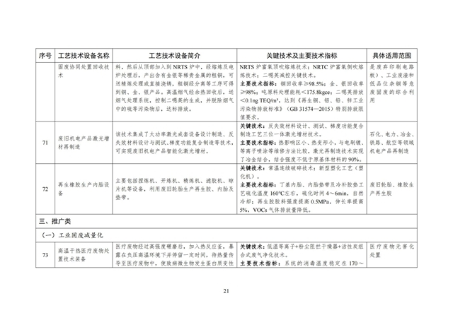 為貫徹落實《中華人民共和國固體廢物污染環(huán)境防治法》,加快工業(yè)資源綜合利用先進(jìn)適用技術(shù)裝備推廣應(yīng)用,持續(xù)提高資源利用效率,我們編制了《國家工業(yè)資源綜合利用先進(jìn)適用工藝技術(shù)設(shè)備目錄(2021年版)》。